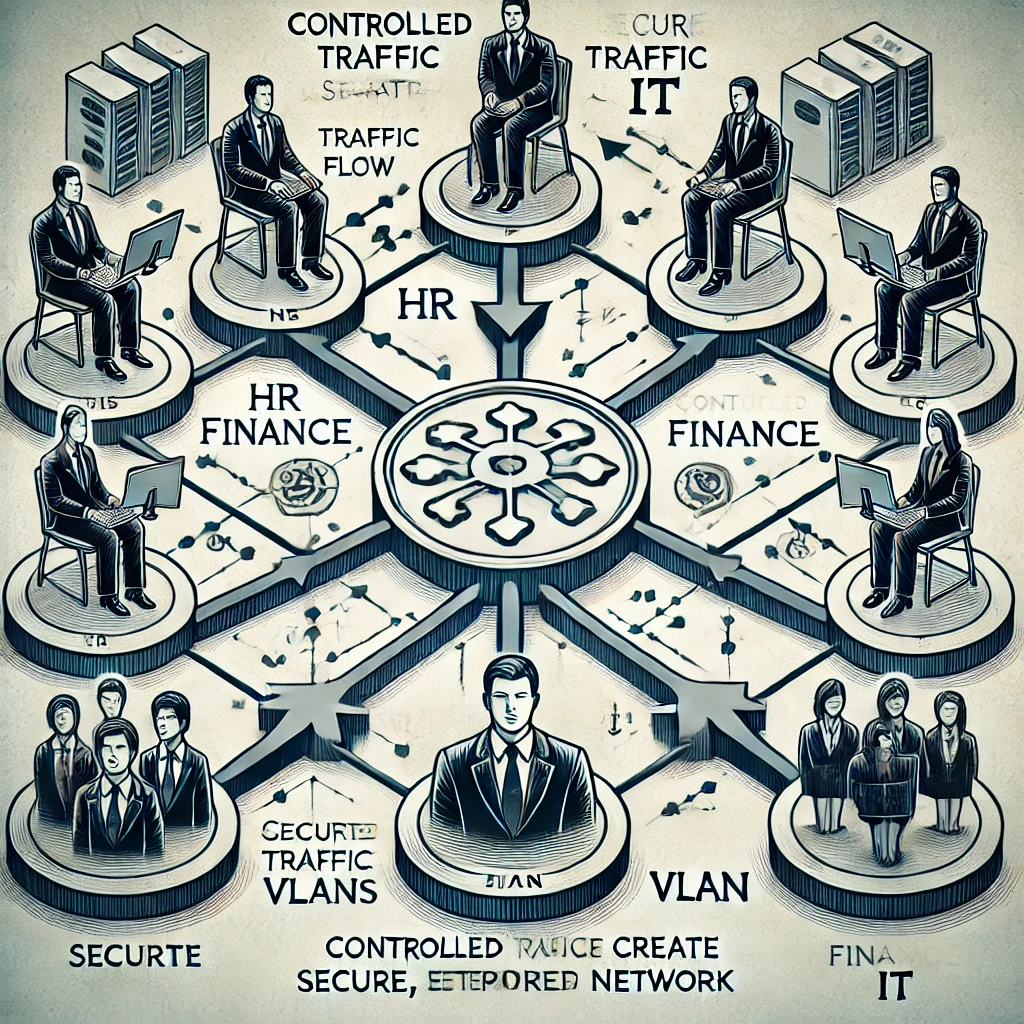 Example: A company might use VLANs to separate guest Wi-Fi traffic from internal network traffic, ensuring that visitors cannot access sensitive company resources.